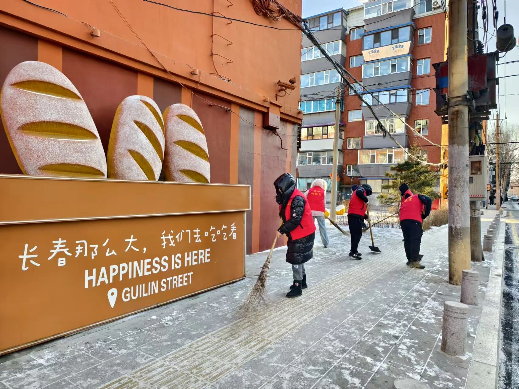 桂林街道作为桂林商圈的重要组成部分,是特色美食、萌宠之家、咖啡文创、休闲酒吧的商业集聚区,多个时尚、潮流、前卫、个性的造型设计,在新雪季吸引了大批游客打卡。为确保游客安全出行,提升“宾至如归”的美好体验,日前,桂林街道办事处发起冰雪季“守护行动”。