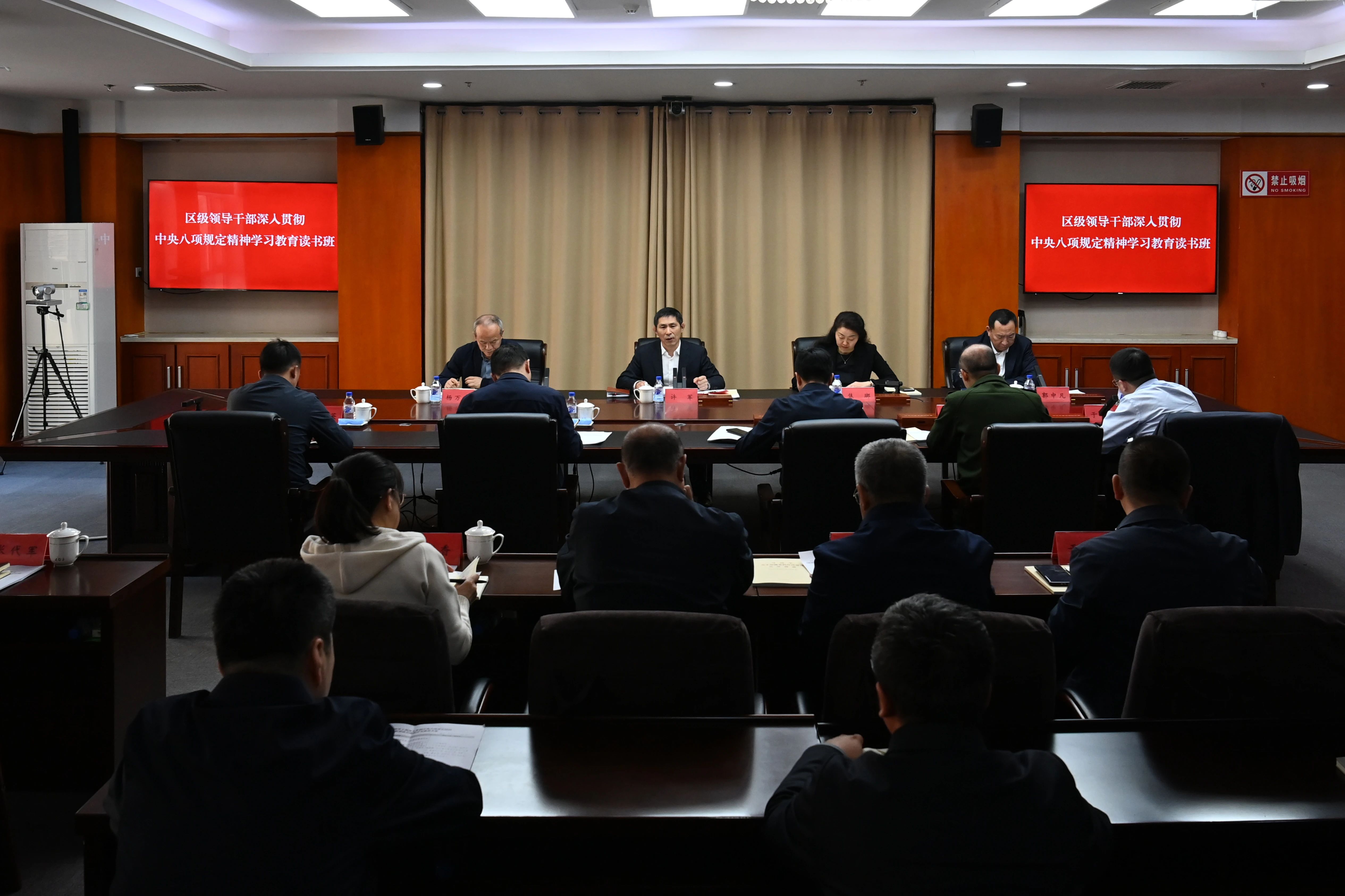 读书班采用专题辅导、个人自学与集中研讨相结合的方式开展。期间,市委党校马克思主义学院负责人张美兰教授围绕“深入学习习近平总书记关于加强党的作风建设的重要论述和中央八项规定及其实施细则精神”主题进行专题授课。区委常委、纪委书记、监委主任于开广作主题发言,系统讲解中央八项规定精神核心要义和实践要求。区级领导分别进行现场发言、提交书面材料,交流学习心得体会。