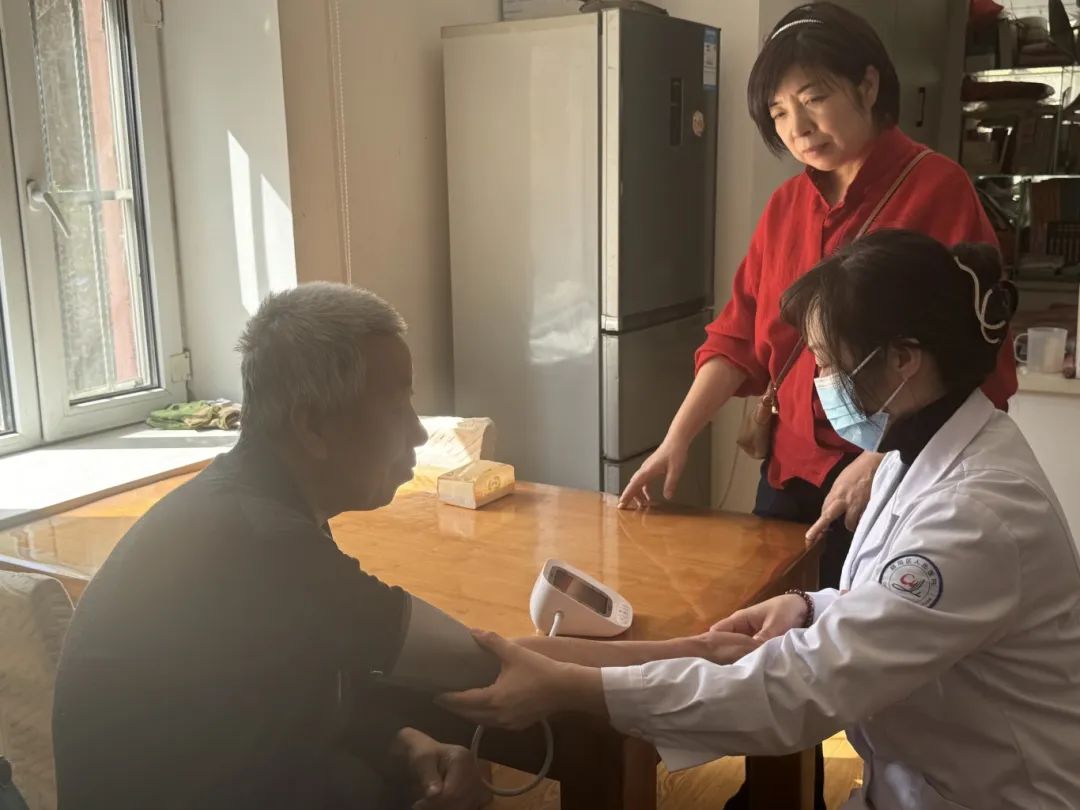 区政协委员、区人民医院副主任药师曲艺平发挥“双重身份”作用,带领医院“白衣卫士”志愿服务队送医上门,医院的内科医生和护理团队为失能老人测血压、量血糖、健康查体、提供用药指导等公益服务。专家们不仅耐心倾听每一位老人的病情描述,还为他们制定个性化的治疗方案,并给予专业、详尽的健康咨询解答,助力老人们提升自我健康管理意识和能力。