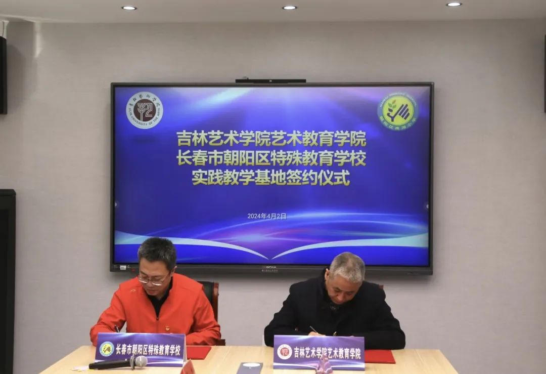 特殊教育学校与吉林艺术学院艺术教育学院联合举行实践教学基地签约仪式,共同建设一支高素质专业化的特殊教育专业教师队伍,提升特殊儿童教育康复水平。