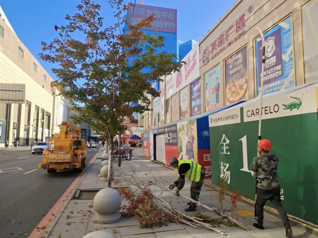 在南昌路、立信街、湖光路、崇智胡同、昌平街、进化街、西中华路、清和街、自由胡同、同志街等多条路进行树木修剪(杨树87株、柳树12株、糖槭217株、松树3株)、危树砍伐3株。