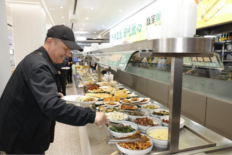 品尝了饭菜后,路先生打开了话匣子,他说自己今年已经70岁了,是一名退伍老兵,以前在部队做宣传工作。“总体感受都很好,饭菜的口味也比较适合老年人,自助选餐很自由,想吃啥自己选,还有就是用公交卡充值用餐,确实感觉很方便。”路先生表示,这次用餐体验很好,餐厅的装修、布置也很人性化。