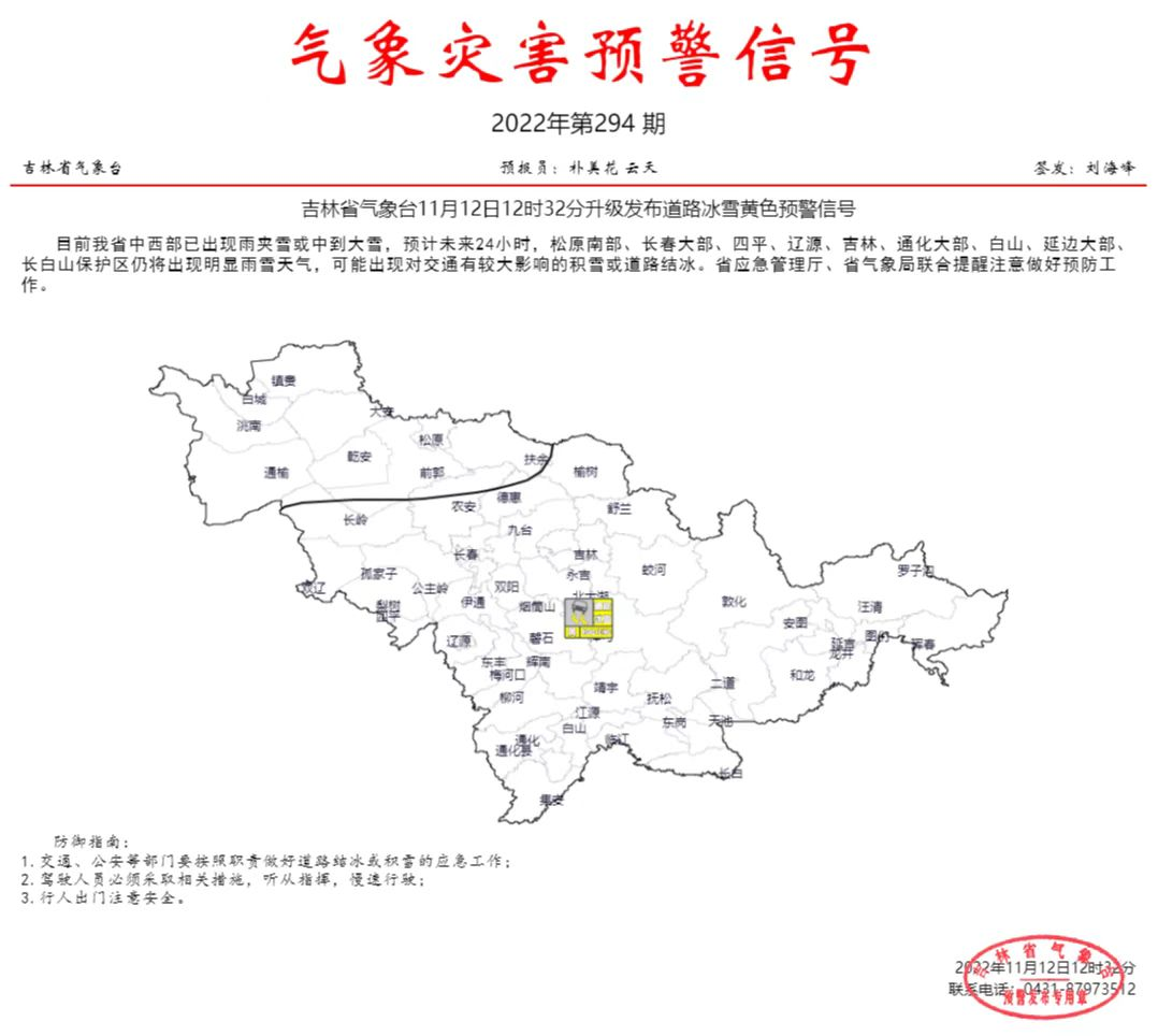 道路冰雪黄色预警
