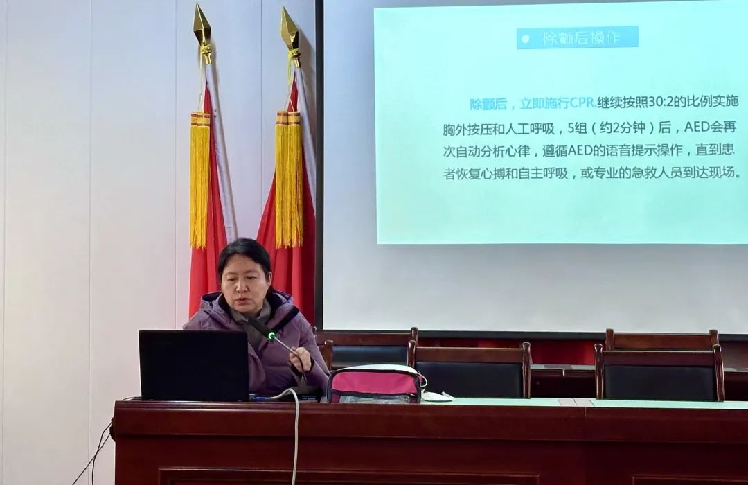 培训邀请到长春急救中心第一分中心党支部书记杨晓燕、吉林大路急救站站长张新岩、实操老师刘佳及关云芳为村民进行理论知识教学讲解、分组实操和答疑解惑。培训首先为大家讲授如何正确实施心肺复苏术(BLS)、自动体外电击器(AED)、成人和婴儿海姆立克急救法等紧急处理方法和急救措施。随后把理论知识与实操教学深度融合,对心肺复苏和海姆立克急救法进行现场示范,并组织村民开展模拟练习,对实操过程中不规范、不标准的动作进行现场纠正。培训中,大家认真学习,大胆尝试,反复练习,收获颇丰。